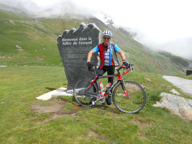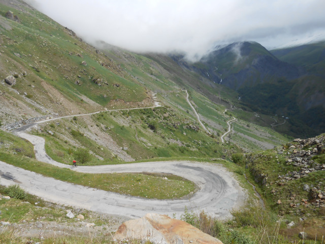 | cloudy and light rain at the top of the climb to Alpe d'Huez |