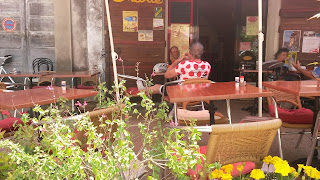 The town is very quaint with building of old stone and render construction. The café seemed to me to be a very marginal business, as there is no through road and the only clients the owner would see would be mainly walkers who come to the area during the summer months. The lady who served me was very proud of her town and suggest it was “Une Ville tres tranquil” (a very peaceful town).